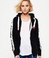 Superdry women’s sport code Raglan zip hoodie. A spin on the classic ziphood this sport code ziphood features our iconic Superdry graphic down both sleeves and a logo on the chest. This ziphood features a super soft feel inside and two front pockets. The Raglan ziphood is finished with a Superdry logo on the drawstring of the hood, ribbed cuffs and waistband and has a logo tab on the hem.