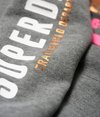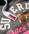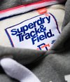 Superdry women’s Track & Field hoodie. This soft and comfortable overhead hoodie features one front pouch pocket, a large Superdry Track & Field cracked print on the chest as well as some cracked print on one of the sleeves. The hoodie is finished with a Vintage Superdry logo tab on one of the ribbed cuffs.