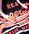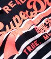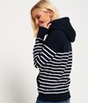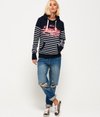 Superdry women’s Vintage logo stripe hoodie. A twist on our classic vintage logo hoodie, this overhead hoodie features an all over stripe pattern with a large vintage graphic logo with a cracked finish on the front. This hoodie also has a drawstring hood, and a single pouch pocket on the front. The Vintage logo hoodie is finished off with embroidered detailing on the seam, ribbed cuffs and a ribbed hem.