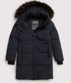 Superdry Cocoon parka coat. Wrap up this season in our cocoon parka coat. Featuring zip and popper fastening right up to the neck, ribbed cuffs, removable hood with detachable faux fur, two zip fastened front pockets and a padded design. Details include, Superdry logo patch on one arm and an embroidered Superdry logo on the back to the hemline.