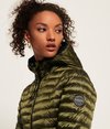 Superdry women’s Core down hooded jacket. This quilted, lightweight jacket is the perfect transitional wardrobe addition, it features a 90/10 premium duck down and very high down fill power rating, making it ideal to keep you warm in the cold, as well as offering brilliant insulation. The jacket also features an elasticated hood, cuffs and hem, zip fastening and two front pockets. The Core down hooded jacket is finished with a rubber Superdry logo badge on one sleeve. This is a great style investment for your jacket collection.
