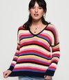Superdry women's Eloise textured open knit. Update your knitwear collection this season with the Eloise textured open knit, featuring a soft vee neck, long sleeves and logo tab on the hem. The perfect partner to any of your favourite denim pieces, this knit is sure to become your new wardrobe hero this season.