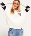 Superdry women’s Varsity spirit slouch crew jumper. This Varsity inspired knit jumper is the perfect statement piece of this season’s wardrobe, featuring a ribbed crew neck, ribbed cuffs and a ribbed hem. This jumper also has two different styles of knitted patterns, a Superdry logo badge on the chest and is finished with a Superdry logo tab on the hem.