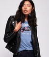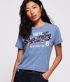 Superdry women's Heritage Flock T-shirt. This classic crew neck t-shirt features a flocked Superdry logo print across the chest and a flocked print on one sleeve. Finished with a Superdry logo tab on one sleeve.