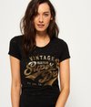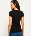 Superdry women’s Stacker burnout t-shirt. A classic fitted t-shirt with burnout fabric and a high build Stacker graphic on the chest.