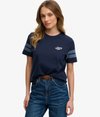 The perfect refresh for the coming season. Our Varsity Stripe Script T-Shirt has been gorgeously crafted with contrasting stripes on the sleeves and an embroidered logo on the chest, allowing you to create depth and style in every outfit.