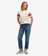 The perfect refresh for the coming season. Our Varsity Stripe Script T-Shirt has been gorgeously crafted with contrasting stripes on the sleeves and an embroidered logo on the chest, allowing you to create depth and style in every outfit.
