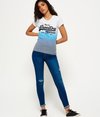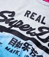 Superdry women’s Vintage Logo all over print t-shirt. A twist on our classic Vintage Logo t-shirt, this all over print design gives off a tie-dye effect and the t-shirt features a Real Superdry rubber logo across the chest. This statement piece is finished with a rubber number logo on one sleeve.