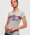 Superdry women’s Vintage logo stripe t-shirt. For a fuss free approach to easy dressing, look no further than the Vintage logo stripe tee. This is a great all year round piece, worn on its own or layered up with one of our comfy iconic hoodies and your favourite pair of jeans. This tee features Superdry logo across the chest, a crew neckline, short sleeves and a Superdry tab on the hem.