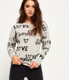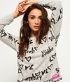 Superdry women’s all over print burnout crew jumper. This is a perfect lightweight, loose fit jumper for layering this season. This jumper features a crew neckline and an all over graphic design with a mesh under layer. This crew jumper is finished off with a Superdry logo patch near the hem.
