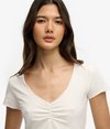 The Athletic Essentials Gathered Short Sleeve Top redefines everyday ease. Sleek overlocked seams emphasise minimalist lines, while ruched front detailing creates a flattering silhouette. Simple yet chic, it’s the ultimate throw-on piece that always looks intentional.