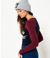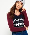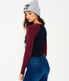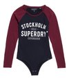 Superdry women’s baseball bodysuit. This sporty but chic long sleeve bodysuit features two-tone baseball sleeves and the iconic Superdry graphic print on the front. The baseball bodysuit has a popper fastened gusset and is finished with a Superdry logo tab on the hem.