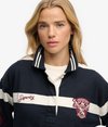 Offering a relaxed sport vibe, our Crest Stripe Rugby Top combines all the classic styling cues of rugby apparel with our signature Superdry comfort and quality. A true statement piece to elevate your casual wardrobe, ensuring that your personal style tells a story of heritage with soft comfort and timeless style.