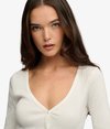 Simple and stylish, the Essential Button Through Long Sleeve Top brings a luxurious feel to your authentic style, crafted from a soft ribbed material. A subtle elevated staple guaranteed to become your favourite wardrobe staple, finished off with lettuce trim hem and embroidered logo offering a premium touch that ensures every outfit is perfect.