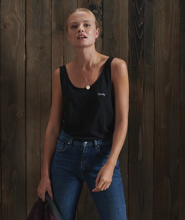 Superdry women's Organic Cotton Essential tank top from the Orange Label range. You can never have too many plain tops but why not mix it up a bit with this organic cotton blend tank top.