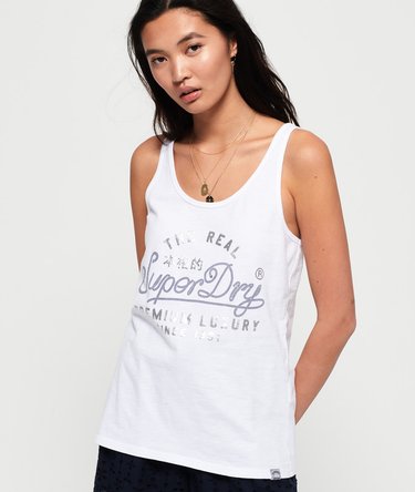 Superdry women's Premium Luxury rope vest top. This soft cotton vest is perfect for the warmer weather, featuring a racer style back, rope effect graphic on the chest and subtle logo tab on the hem. Why not try tucking the vest into a denim skirt and pairing with trainers for a look that's relaxed yet stylish.