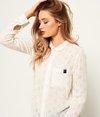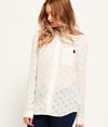 Superdry women’s Shiffley Penny blouse. This long sleeve, lightweight blouse features an all over floral lace insert design, button fastening and a single pocket on the chest. The Shiffley Penny blouse is finished off with button cuffs and a Superdry logo tab on the pocket opening.